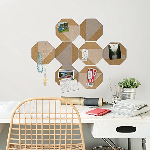Wall Pops WPK2312 Cream and Taupe Octagon Cork Organizer Shapes Wall-Decor-Stickers
