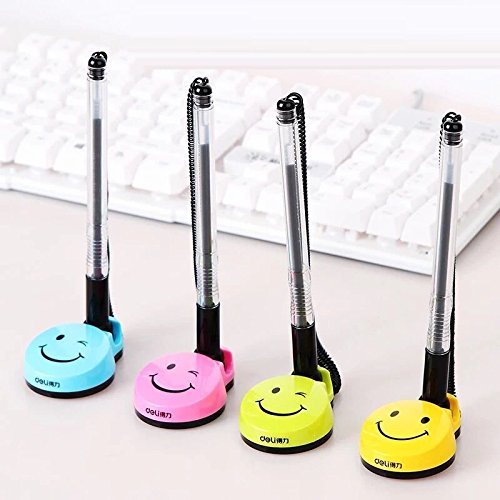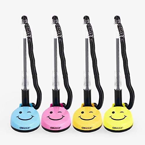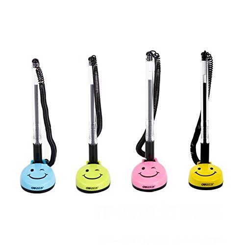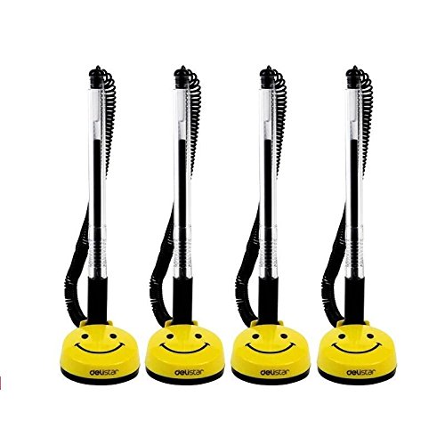 -. Feature : package included: 4 x Rotatable smile face counter pens(Yellow) / Black ink pens with 0.5mm ballpoint / Keep your pens from walking away with telephone-style plastic coil / Adhesive-backed base is simple to apply - no screws, no holes / Ideal for banks, retailers, office lobbies, hotel lobbies, tuition offices, unemployment offices etc.