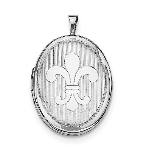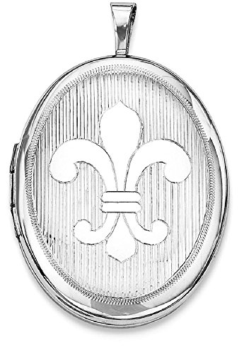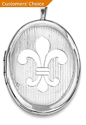 ICECARATS DESIGNER JEWELRY 925 STERLING SILVER 26MM FLEUR DE LIS OVAL PHOTO PENDANT CHARM LOCKET CHAIN NECKLACE THAT HOLDS PICTURES