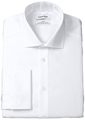 Calvin Klein Men's Non Iron Slim Fit Herringbone French Cuff Dress Shirt