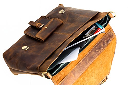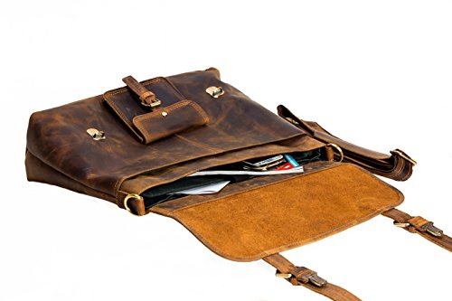 -. Feature : Leather bag / Bags by hlc are high quality leather products which impress through excellent quality and timeless design. This messenger bag, too convinces through the right format. High quality manufactured 100% real buffalo leather with the perfect size for a messenger bag. A great companion for him and her all day, ideal for leisure time, school, university or work. / SIZE (WxHxD): Approximately 15x12x4 in (perfect for documents, laptop / notebook, netbook or iPad) / This leatherbag is a real space saver with its multiple small compartments and spacious division. The inner fabric in classy olive green adds to the timeless design and matches the vintage looking REAL LEATHER. / PERFECT FOR MULTIPURPOSE USES: Start your journey now! Use this shoulder bag as office bag, school bag, casual bag, laptop bag, notebook case, messager bag and MORE.!!!RUSH TO BUY!!!LIMITED OFFER