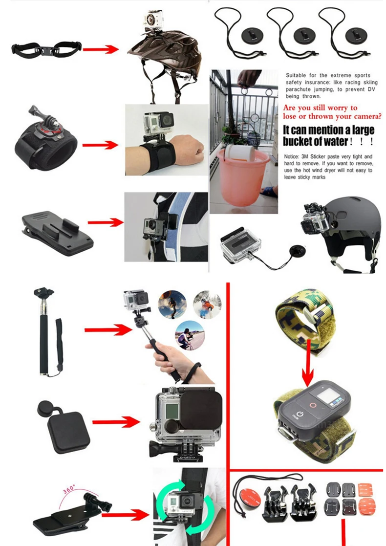 Compatible Action Camera Brand:SOOCOO,EKEN,SONY,NIKON,Sjcam,Garmin,GoPro