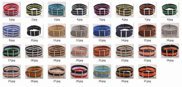 | [해외]재고 도매! 24 미리메터 높은 품질의 나일론 시계 밴드 방수 시계 스트랩 패션 wach 밴드 31 색상 100 개/몫 |