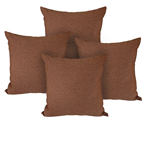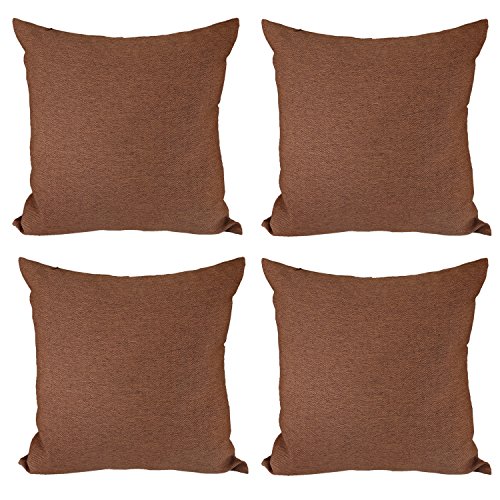 Deconovo Faux Linen Woven Fine Home Decorative Hand Made Pillow Case Cushion Cover With Invisible Zipper For Chair 18x18 Inch Brown 4Pcs
