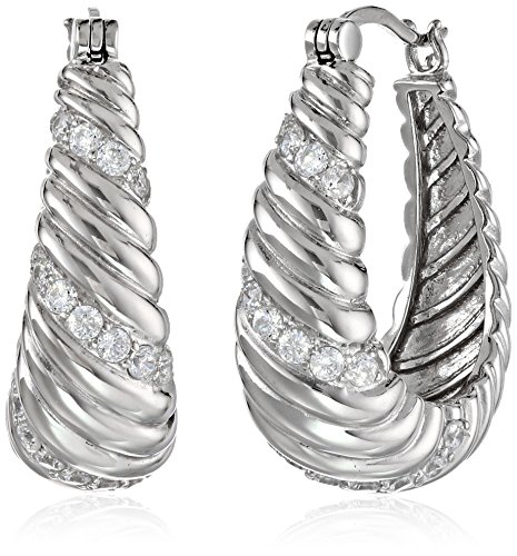 Sterling Silver Cubic Zirconia Twisted Oval Hoop Earrings (2 cttw)