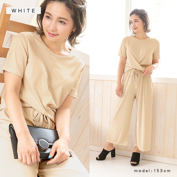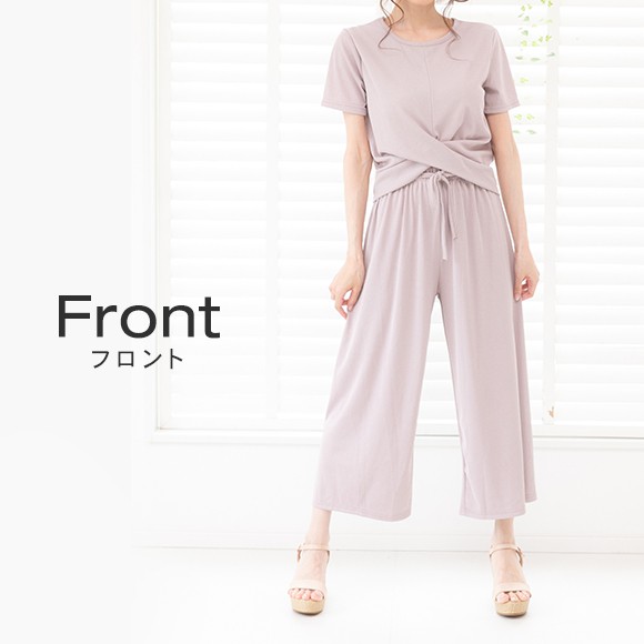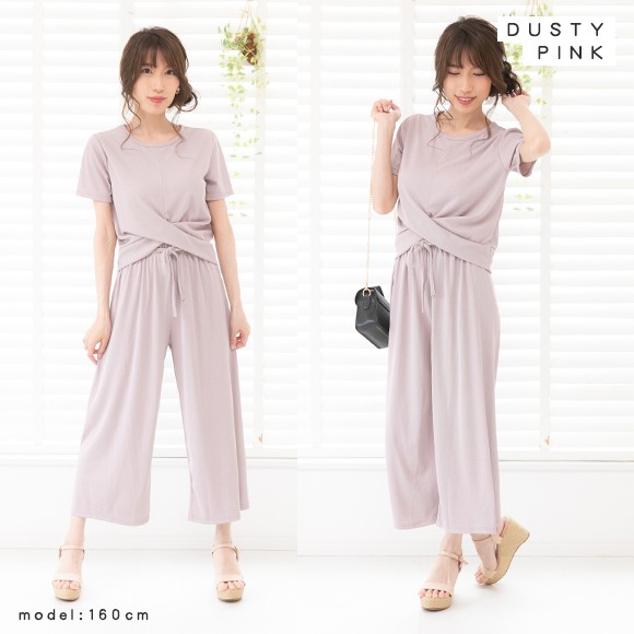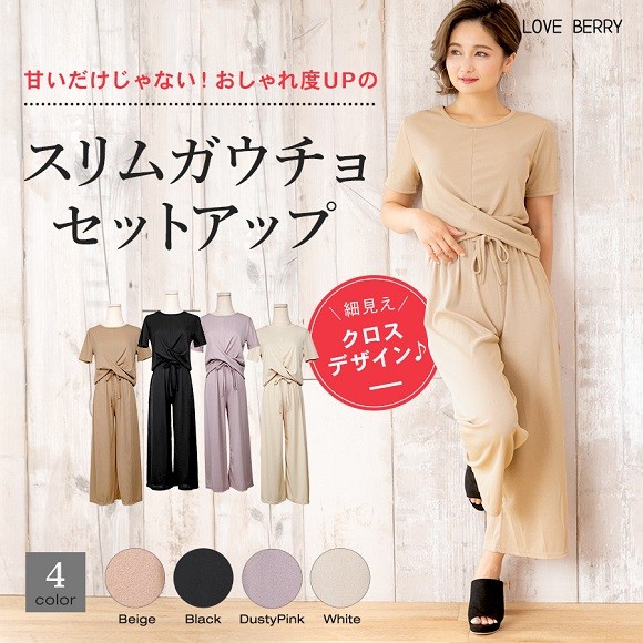 ラインが綺麗なガウチョパンツとフロントのクロスデザインがお洒落なセットアップです★