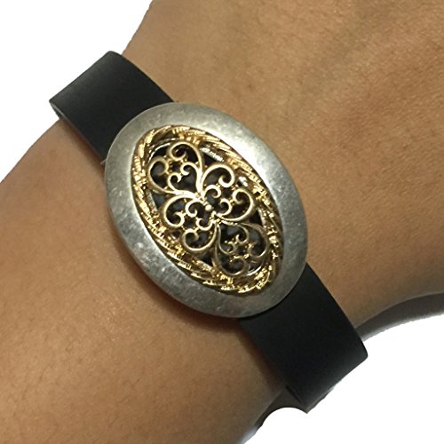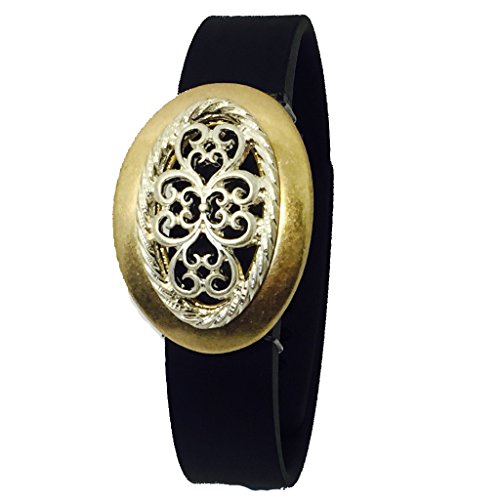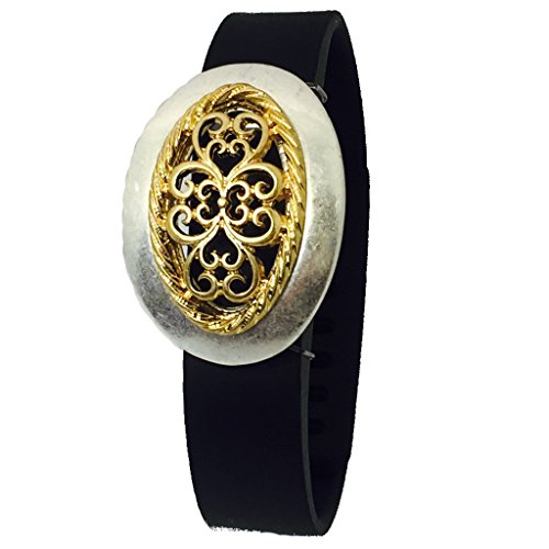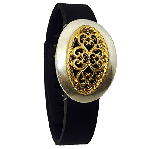 -. Title : Fitbit Flex, Jawbone Up Jewelry to Accessorize Your Fitness Activity Tracker Bracelet - Embellished Oval Gold Silver Ornate VIRGINIA Metal Bracelet Accessory