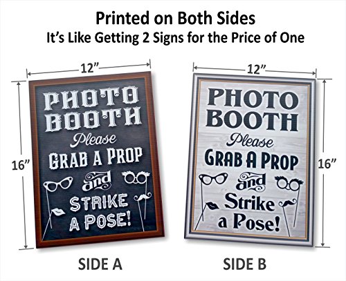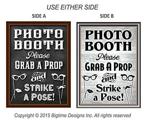 Bigtime Designs Photo Booth Props Sign, 2-Sided, Use for any Wedding, Party or Event Chalkboard Style on 1 Side and a Rustic Vintage Look on the 2nd, 16" L x 12" W