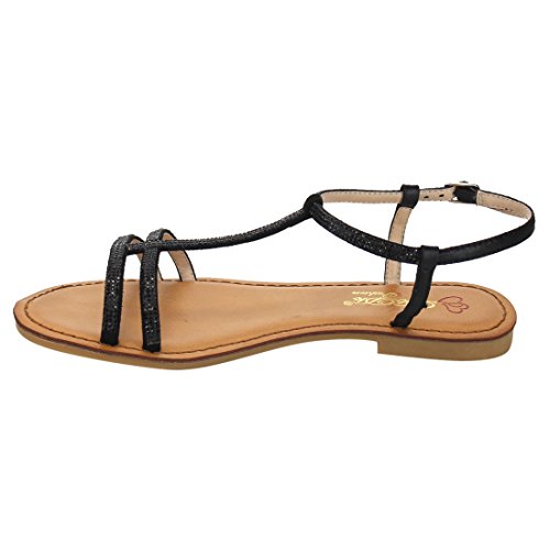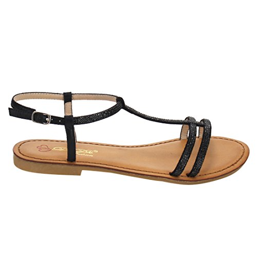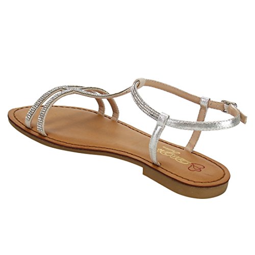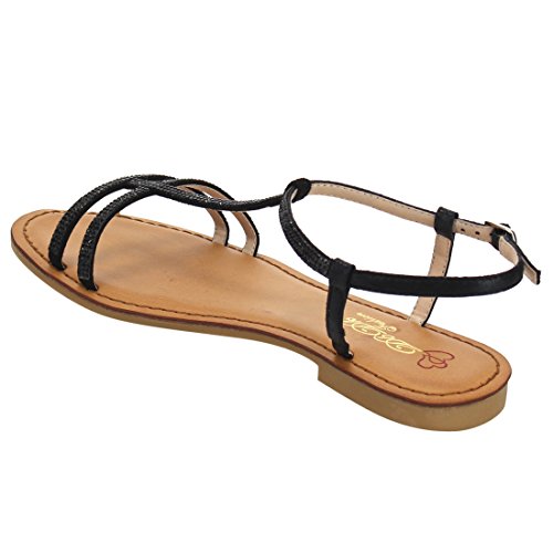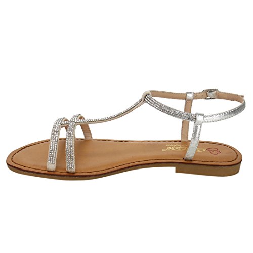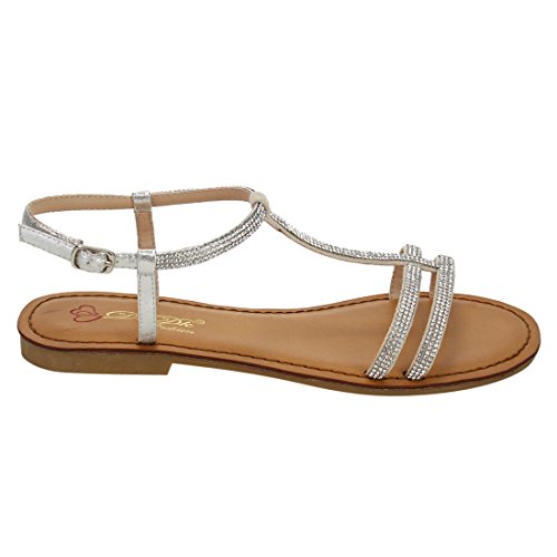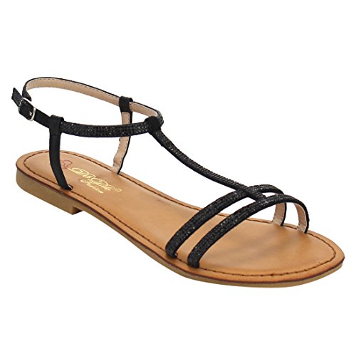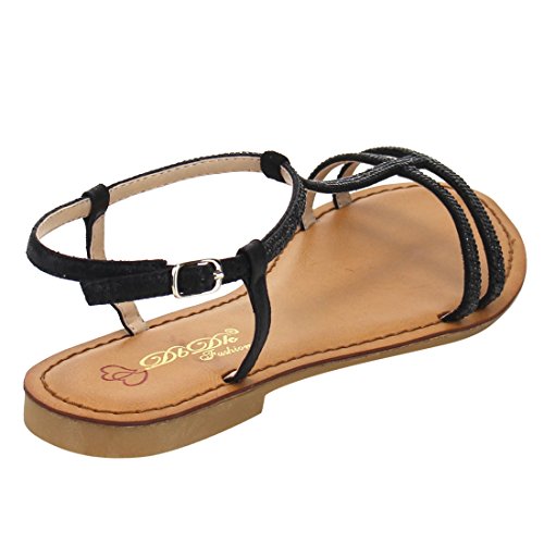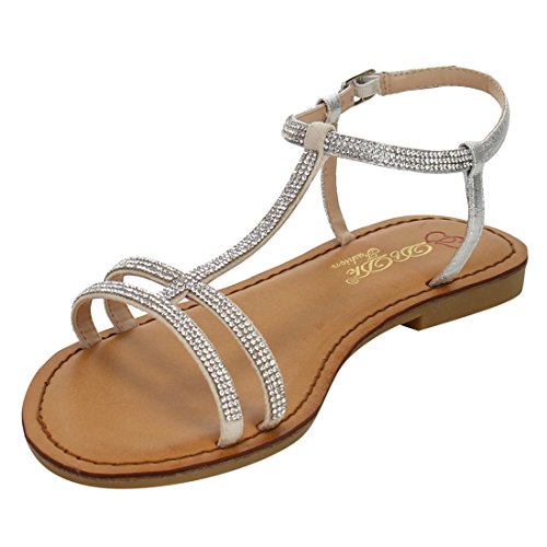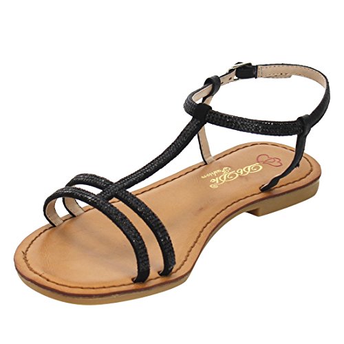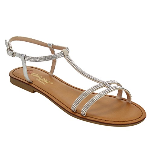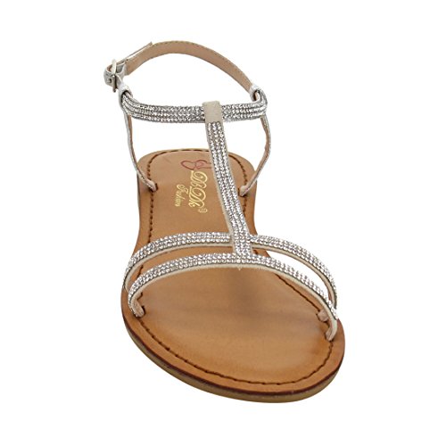 DBDK AH48 Women's Rhinestone Ankle Buckle T-Strap Low Flat Sandals