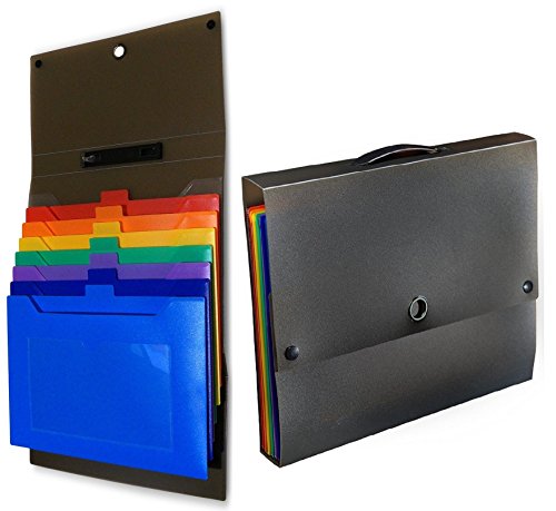 Desk And Wall Paper Organizer - 9 Letter Size Pocket File Folders - Durable Organizational Chart Transforms Into Portable Briefcase - Eco Friendly Space Saver - Satisfaction Guarantee (Black)