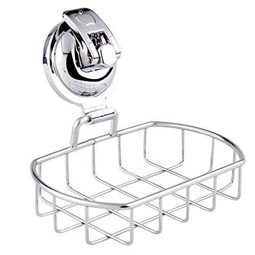 Tebery Super Powerful Vacuum Suction Soap Dish - Easy Installation and No Drilling - Strong Stainless Steel Sponge Holder for Bathroom & Kitchen (Chrome)