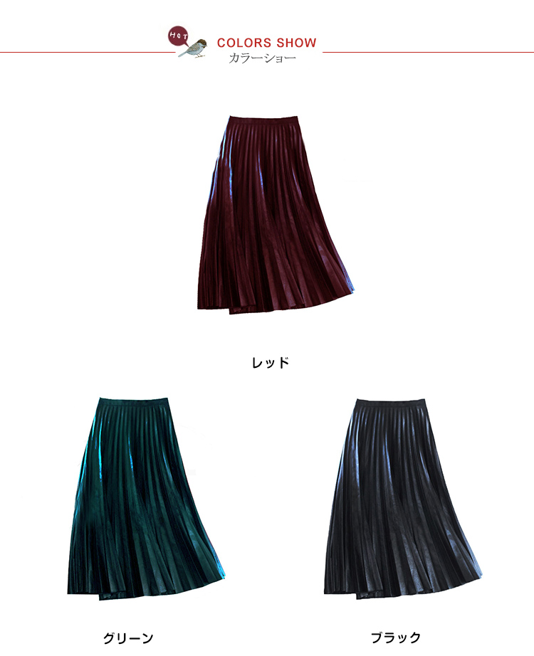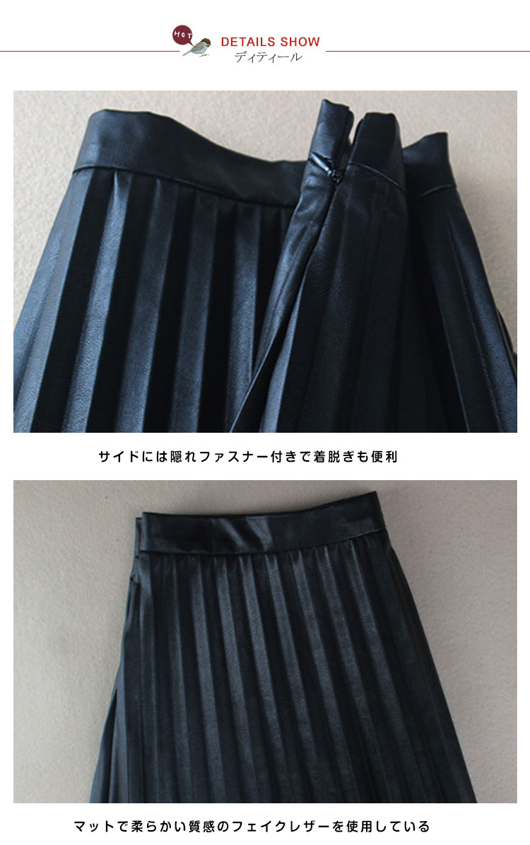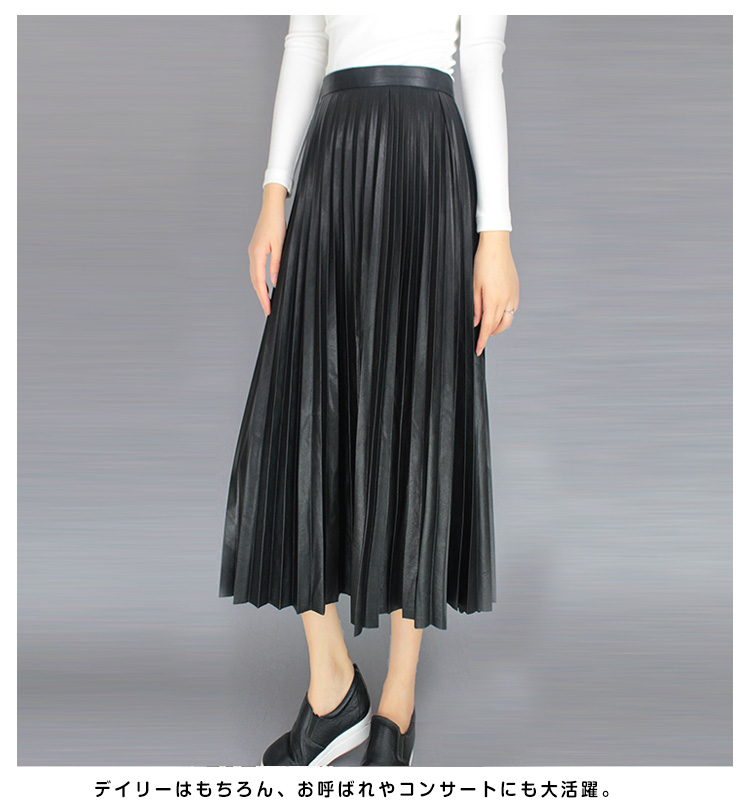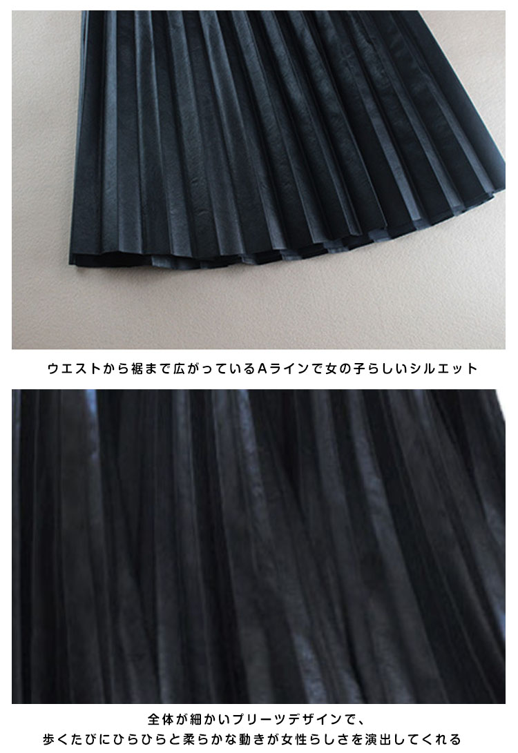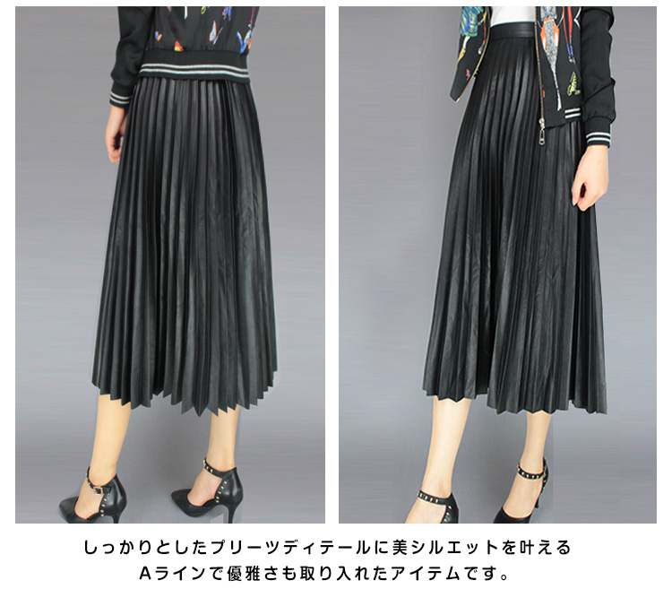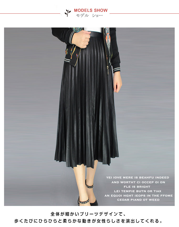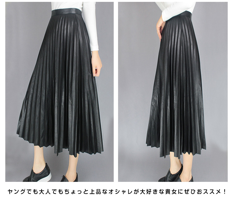 | ミモレ丈フェイクレザーブリーツスカートの登場。全体が細かいプリーツデザインで、歩くたびにひらひらと柔らかな動きが女性らしさを演出してくれる。しっかりとしたプリーツディテールに美シルエットを叶えるAラインで優雅さも取り入れたアイテムです。艶のある発色で持ち出したワンランク上の上質感!デイリーはもちろん、お呼ばれやコンサートにも大活躍。ヤングでも大人でもちょっと上品なオシャレが大好きな貴女にぜひおススメ! | |