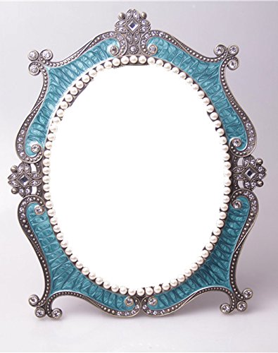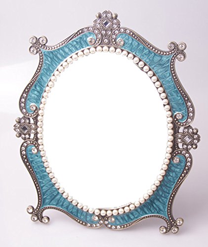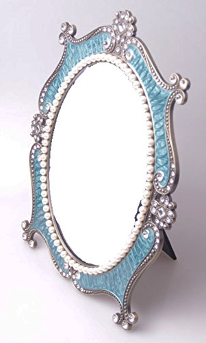 9.6" Two-Colored Mirror Metal Princess Queen Vintage Blue and Silver Mirror Metal Retro