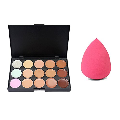 -. Feature : Safe and soft for your facial skin, convenient to store and carry, ideal for travelling / Range of 15 multiple long wear concealer colors with different skin / Sponge Puff Material: soft sponge; Puff shape: rose shape / Concealer Palette size: Approx. 5.94*3.94*0.39inch/15.1*10*1cm / Package included: 1x Concealer Palette, 1x Sponge Puff