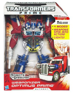 Optimus Prime. He does not deploy the full measure of his strength often, but when the fight against the Decepticons is at its worst, you can rely on the leader of the Autobots to rain fire down on the evil robots. This intimidating Optimus Prime figure brings on four times the power — with four different modes, glowing power-up lights, and weapons that spin into action! Your favorite Autobot hero comes with a blaster cannon, and his weapons deploy in both robot and vehicle mode. Switch between Robot Command Mode, Weaponized Robot Mode, Truck Transport Mode and Weaponized Truck Mode. The Decepticon enemy can’t possibly keep up.