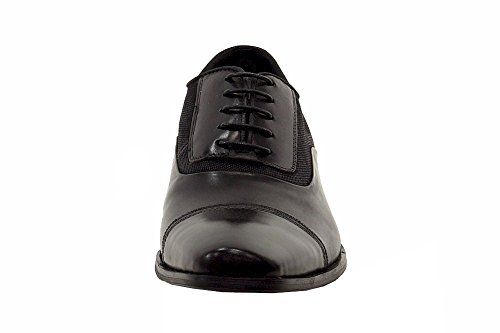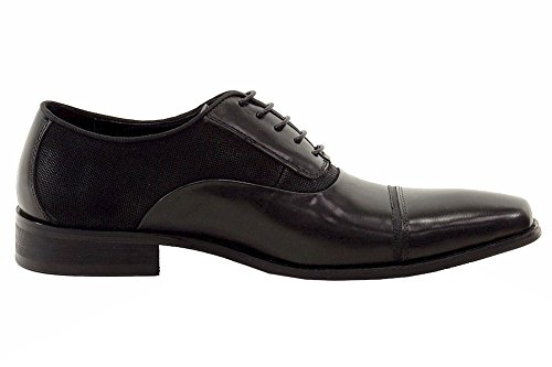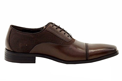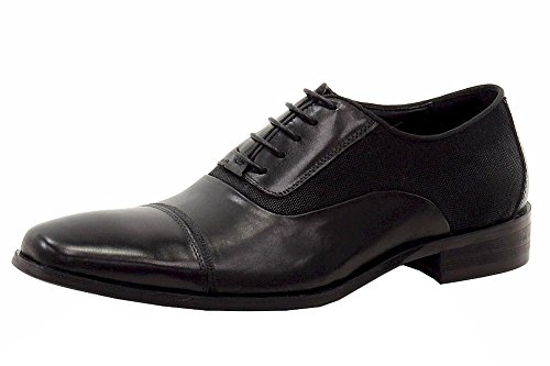 Product DescriptionLace up oxford dress shoe with canvas details and cap toe0