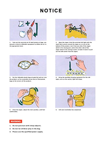 Product Description 1.Bubble bag inside the filling, light and comfortable fit the back 2.Unique luminous USB design, suitable for outdoor use in summer.Power is supplied when USB is connected, but the product will not continue to light after leaving USB 3.Simple design, not easy to dirty, easy to clean 4.Fabric comfortable, thin 5.Carrying capacity strong, adults and children can sit all 6.Adults and children can use, containing lamp,you can use power bank too.party, garden, outdoor, home decoration, summer outdoor party,External material light weight, but very tough material. Combined with the advantages of paper, film and fiber for a tough and durable, with a strong tear resistance. Unidirectional breathable, non-toxic, non-irritating, non-corrosive 0