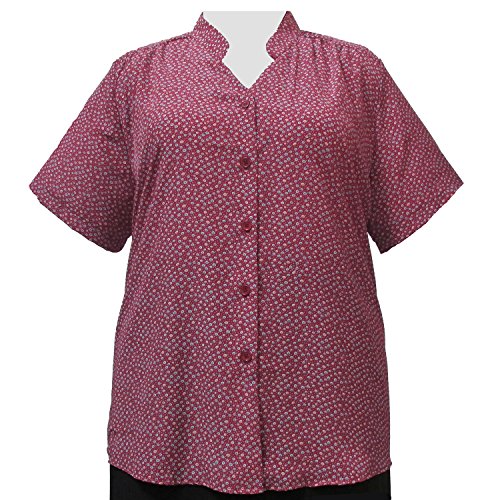Red Pebbles Mandarin Collar V-Neck Tunic Plus Size Woman's Blouse