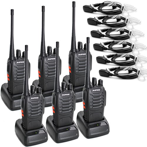 BaoFeng BF-888S Two Way Radio with Built in LED FlashLight (Pack of 6) +Covert Air Acoustic Tube Headset Earpiece