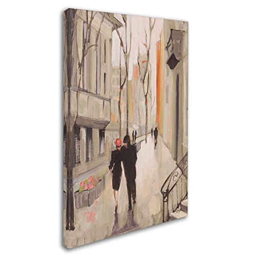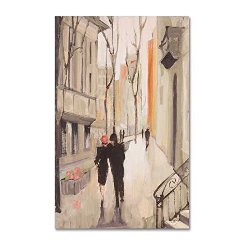This ready to hang, gallery-wrapped art piece features people walking down a city street. Fine artist and muralist Julia Purinton divides her time between the gentle landscape of north shore Boston and a small rural village in Vermont. Both places provide plenty of material for her evocative landscape paintings. She describes her Massachusetts studio as "dog kennel, potting shed, mud room and sanctuary." Working in oils, acrylics, venetian plaster and glaze, Julia's artwork has the luminous glow of images by artists who influence her: Maxfield Parish, Winslow Homer and the Brandywine River School painters. Many layers of glaze create the atmospheric moods of her landscapes. Her work is found in galleries on the east coast. Giclee (jee-clay) is an advanced printmaking process for creating high quality fine art reproductions. The attainable excellence that Giclee printmaking affords makes the reproduction virtually indistinguishable from the original piece. The result is wide acceptance of Giclee by galleries, museums, and private collectors. Gallery wrap is a method of stretching an artist's canvas so that the canvas wraps around the sides and is secured a hidden, wooden frame. This method of stretching and preparing a canvas allows for a frameless presentation of the finished painting.Feature