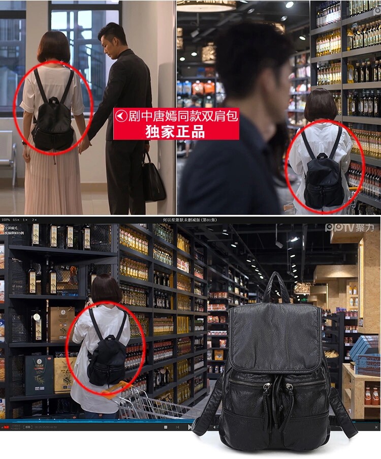 春夏新款何以笙箫默赵默笙同款pu黑色时尚韩版女士双肩背包