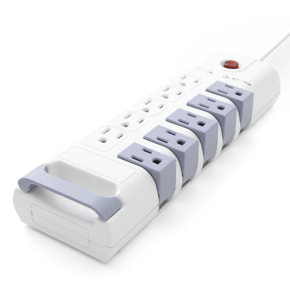 Furthermore, even if the rated capacity of the power strip is exceeded, the built-in breaker automatically turns off the power to prevent overcurrent.