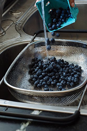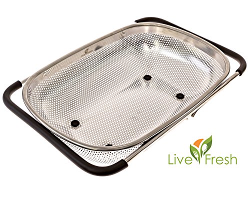 Stop watching your pasta and grains slip through the holes of your colander. No more slow or incompletely draining water. Don't worry about broken handles, warping, tipping over, poor drainage, hard to clean or rust again. With The LiveFresh Premium Stainless Steel Oval Colander Basket, you can handle all of rinsing own a rapid draining 4 qt colander that can rest over-the-sink. It is ideal for rinsing fresh fruits vegetables or straining a boiling a pot of spaghetti. With a stable non-slip rubber feet, you don't have to worry about tipping over. Now you can cook faster, easier and with better results, while avoiding the unpleasant messy part of the cooking experience. MICRO PERFORATED HOLES DRAIN WATER FAST AND KEEP YOUR FOOD IN PLACE Our lightweight steel has very small holes cut into a close mesh-style pattern that allows the water to drain rapidly and stops small pasta from falling through. And while you might think water would drain more quickly if the holes were larger, actually the opposite is true. The entire surface of our colander is covered with micro-perforations for maximum draining, so there's nowhere for water to get trapped.