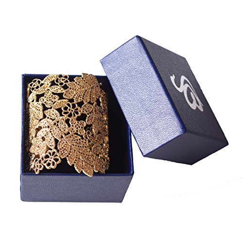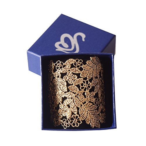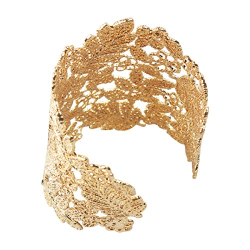 -. Title : Valentine's Day Fashionable Golden Plated Floral Lace Filligree Cuff Bracelet