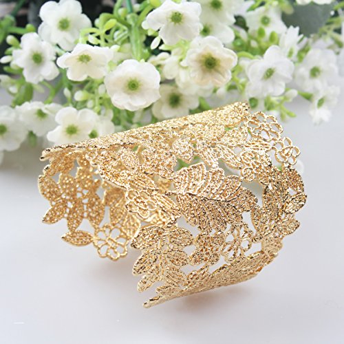 -. Feature : Diameter: 2.3''. Width: 2.9''. / Exquisite lace filligree cuff style statement bracelet. / Fits small to medium size wrist. / Floral lace design is sure to get you noticed. / Romantic, vintage vibe that can be worn casual or dressy, a true timeless treasure.
