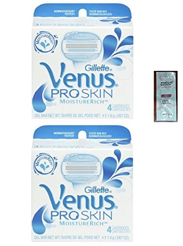 GLLLETTE VENUS PRO SKIN REFILL RAZOR BLADE CARTRIDGES, 8 COUNT (2 PACKS OF 4) W/ FREE LOVING CARE CONDITIONER PACKETTE