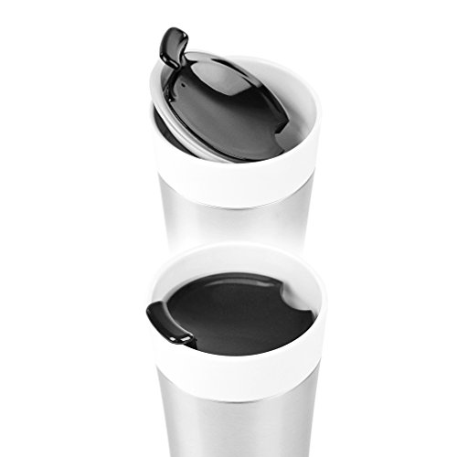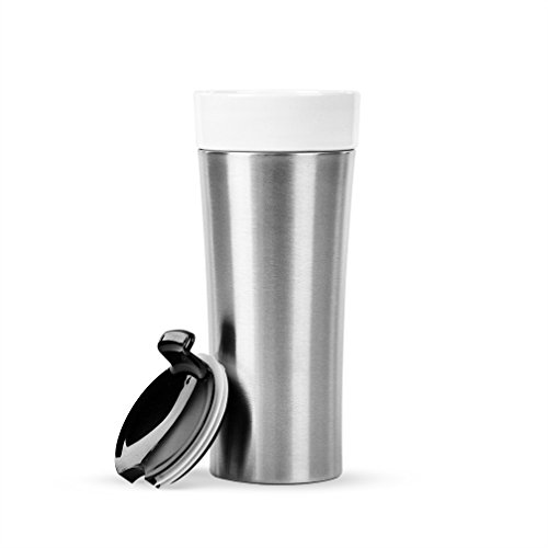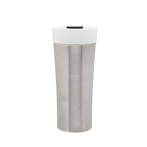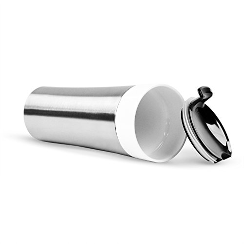 12 Ounce Porcelain Double Wall Thermal Coffee Tumbler w/ Stainless Exterior Sleeve - Brushed Stainless