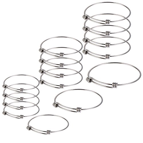 Satinior 15 Pieces Wire Blank Bracelet Expandable Blank Bangle Adjustable Wire Bracelet for DIY Jewelry Making, 2 Inch, 2.4 Inch, 2.6 Inch