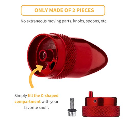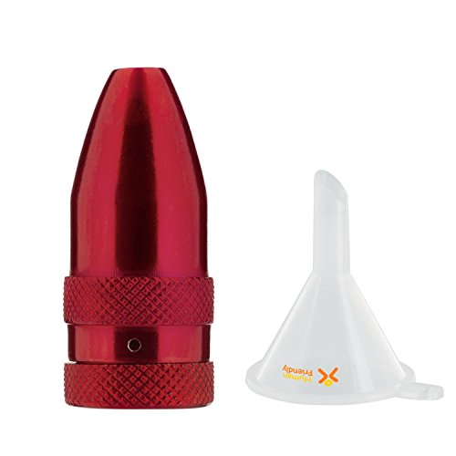 Posh Premium Red Metal Snuff Bullet (Anodized Aluminum) w HumanFriendly Micro Funnel - Twist Nasal Sniffer