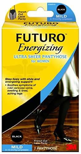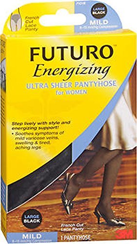 Futuro Ultra Sheer Pantyhose Women, Black, Large French Cut,Mild (8-15mm/hg)