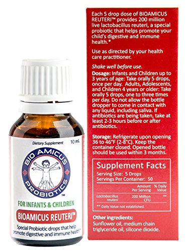BioAmicus Reuteri delivers 200 Million Live Lactobacillus Reuteri per dose, in a 10mL volume bottle. Lactobacillus Reuteri is an important probiotic for your infant's developing digestive system.