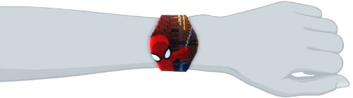 Round watch in Spider-Man motif featuring press-button on face to display time in numbers