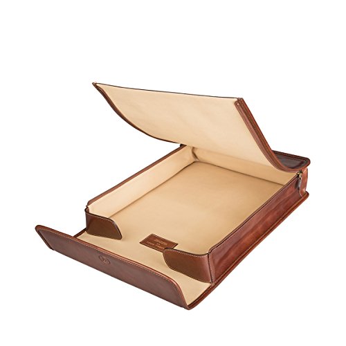 Product Description This quality leather shirt case is ideal for the travelling gentleman who likes to keep his smart suits pristine. An easy to carry and spacious accessory, this leather shirt carrier is perfect for your business trips. Small enough to put in a larger bag or briefcase if needed, this handy accessory ensures your shirts remain intact and un-creased upon arrival. This leather shirt case can hold up to four shirts and can also be used as a shoe case if preferred. Handmade in Italy and with a lifetime guarantee! Our Manufacturing Philosophy Each individual creation is exquisitely handcrafted to the highest standard, using only premium full-grain, vegetable-tanned Italian leather. Not only is each hide carefully selected, but we also insist on sourcing the finest locks, linings and fittings to complement each design. From viewing the thumbnails, this will give you an insight into our tremendous attention to detail and to the careful selection of our materials. Why our leather is better than the rest! The Maxwell Scott 'Vera Pelle Italiana Conciata al Vegetale' is not only the most beautiful leather you have ever seen, but it is intended to stand the test of time and last substantially longer than other visually similar equivalents. It has been carefully chosen from one of the finest and most highly renowned tanneries in the whole of Italy. Our Promise We are dedicated to the total satisfaction of each and every customer. We are aware that our products are certainly not the cheapest on Amazon, however once you have bought and owned a Maxwell Scott product; you will understand that they offer incredible value. We would also like to point out that we have arguably some of the best feedback on Amazon.