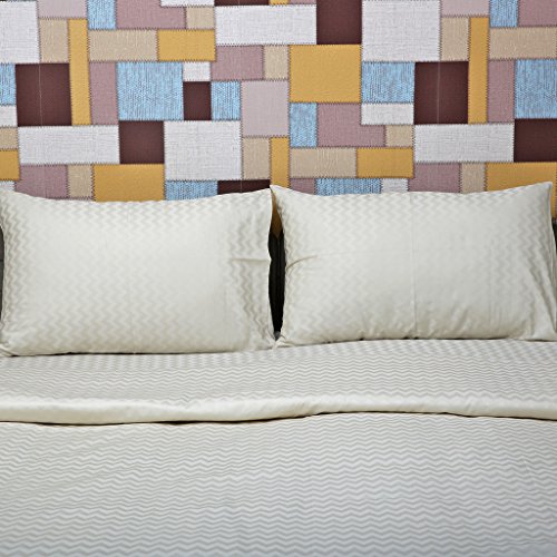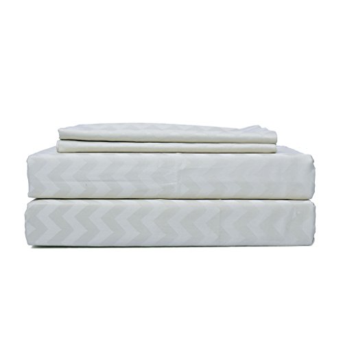 Just Linen 300 Thread Count 100% Egyptian Quality Cotton, Genuine Jacquard Damask Geometrical Pattern Bone White Color , Twin Bedding Sheet Set with Deep Pocketed Fitted Sheets