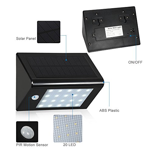 - ★T-SUN Solar Powered Motion Sensor Lights with Super Bright 20 LED Design with Updated Solar Panel Which is More Efficient at Converting the Sunlight Into Battery Charging Power. Save Energy and Provide Longer Working Time. Can illuminate up to 12hrs After Fully Charged.