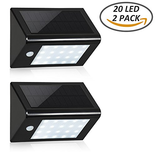Solar Motion Sensor Lights, T-SUN 20 LED Solar Lights Outdoor, Waterproof Security Wall Lights for Yard, Driveway, Garage(Black-6000K)[2 Pack]