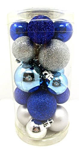 Holiday Time Mini Ornament Set,shatterproof Shiny Bulbs with Glitter,20x (Cobalt Blue/Silver/Blue)