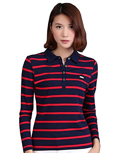 -. Title : Godlovefullポロシャツ レディース Tシャツ 長袖 大きいサイズ 春秋 着痩効果 ボーダー柄 トップス 折り襟 ポロシャツ コットン スキッパー スポーツウェア ゴルフウェア事務服 作業服 通勤