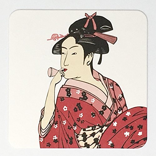 Geisha Kimono Beauty Paper Coasters 3.5 Inch Square Set of 10
