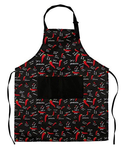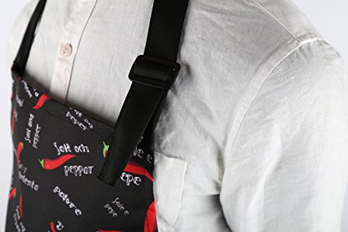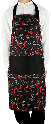 Adjustable Bib Apron With Pockets for Men and Women - Adjustable Neck Strap - Extra Long Ties - Chili Pepper (33inches by 27inches) - by Flying Frog