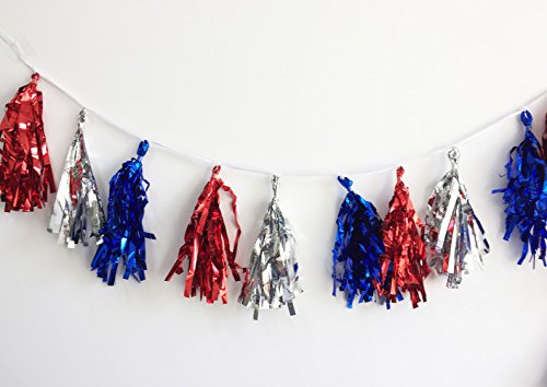 BOSHENG Shinny Tissue Paper Tassels for 4th of July and Memorial Day Banner, Election and Military Ceremony