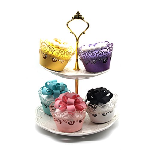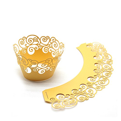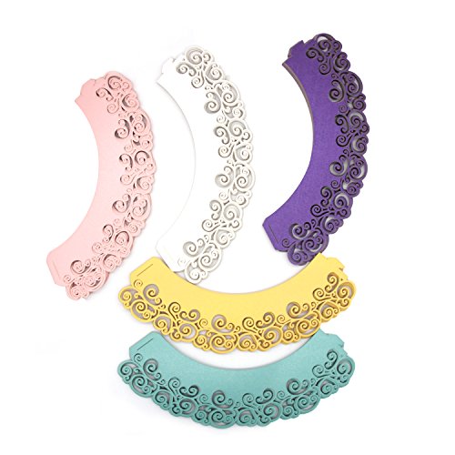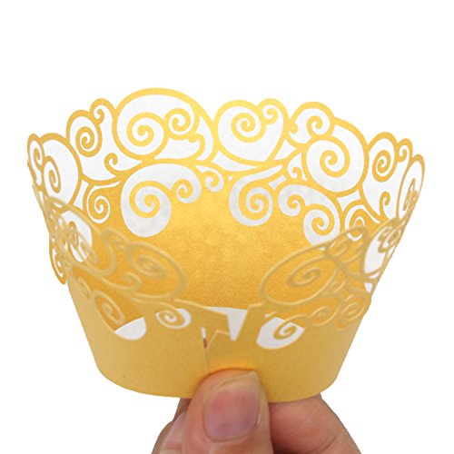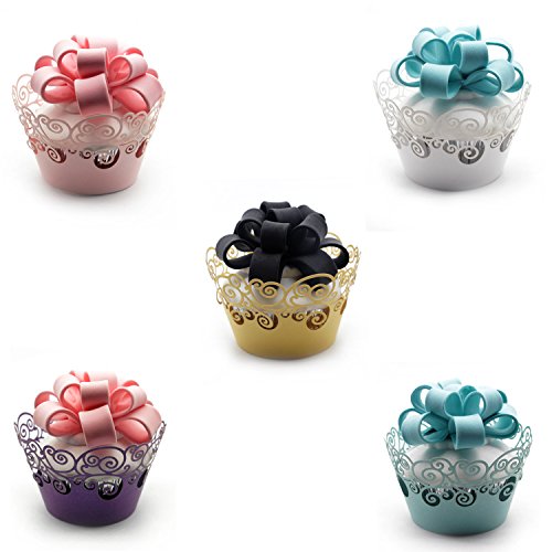 Cupcake Wrappers ,KEIVA 100 Pack Cupcake Wraps in 5 Colors Filigree Artistic Bake Cake Paper Cup Little Vine Laser Cut Liner Baking Cups Holder for Wedding Party Birthday Decoration (Style 2)