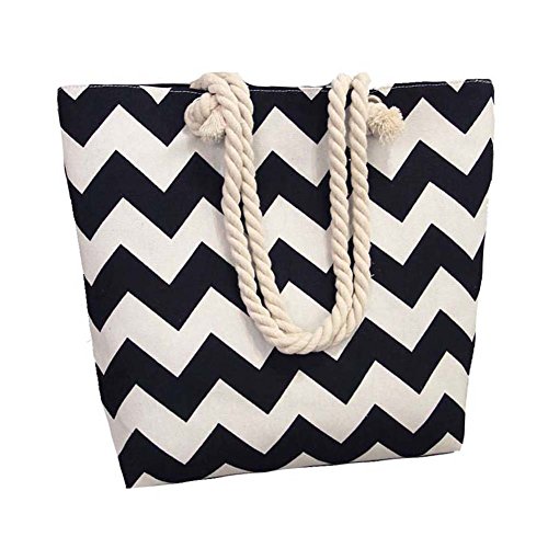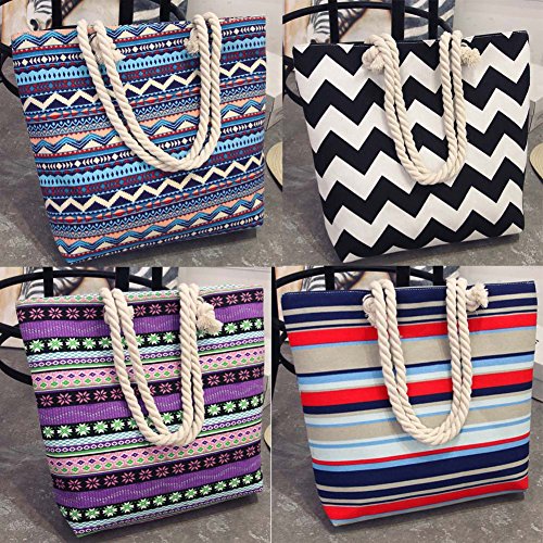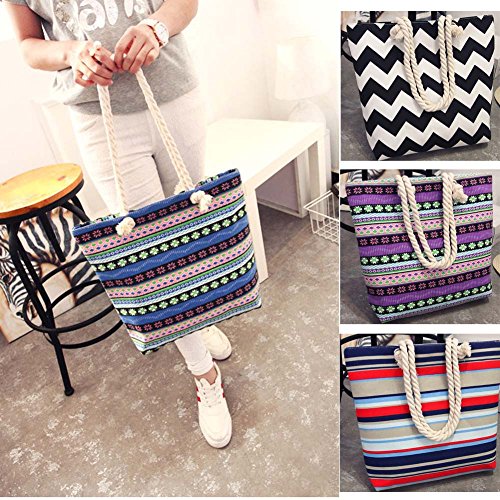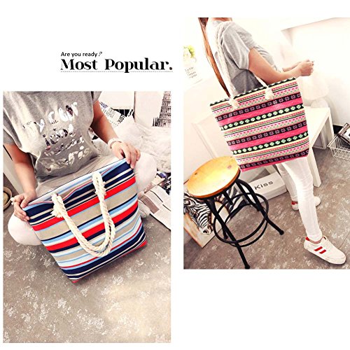 Women Canvas Beach Shoulder Bag Summer Shopping Tote Striped Satchel Large
