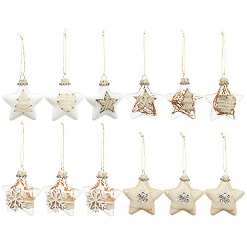 12-Pack of Christmas Tree Decorations - Hanging Star Decorations, Glass Christmas Ornaments, Festive Embellishments, Brown - 2.9 x 6.2 x 1.1