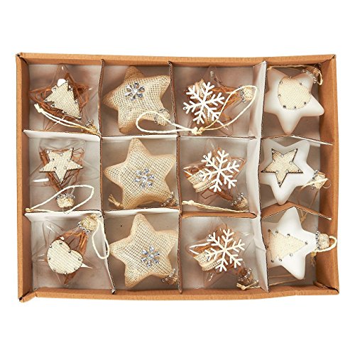 SET INCLUDES: 12 hanging Christmas decorations featuring different star designs for putting on the Christmas tree in the countdown to Christmas