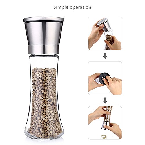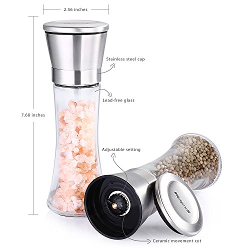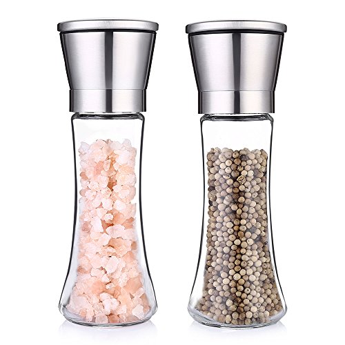 Magicook Salt & Pepper Grinder Set, Pepper Mill and Salt Mill with Stainless Steel Cap and Adjustable Coarseness